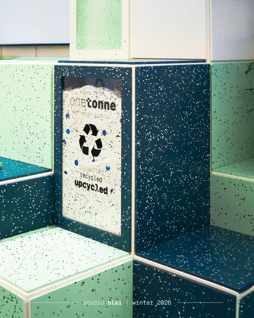 Studio Blai, Sıfır Atık Vakfı tarafından düzenlenen Zero Waste Forum kapsamında, sürdürülebilirlik ve döngüsel ekonomi temasını fiziksel bir mekânsal deneyime dönüştüren modüler sergileme ve etkinlik elemanları geliştirdi. Forumun çevresel farkındalık ve kaynak döngüsünü görünür kılma hedefi doğrultusunda tasarlanan sistem, tamamen geri dönüştürülmüş plastik paneller kullanılarak üretildi. Etkinlik alanında yönlendirme, sergileme ve kamusal etkileşim noktaları oluşturan modüler yapı, etkinlik sonrasında yeniden kullanılabilecek şekilde kurgulandı. Proje, atığın yalnızca azaltılması gereken bir problem değil, yeni tasarım ve üretim potansiyelleri barındıran bir kaynak olduğunu vurgulayan somut bir örnek olarak hayata geçirildi. Uygulama kapsamında 1500 kg plastik atık dönüştürülerek uzun ömürlü mekânsal elemanlara dönüştürüldü.