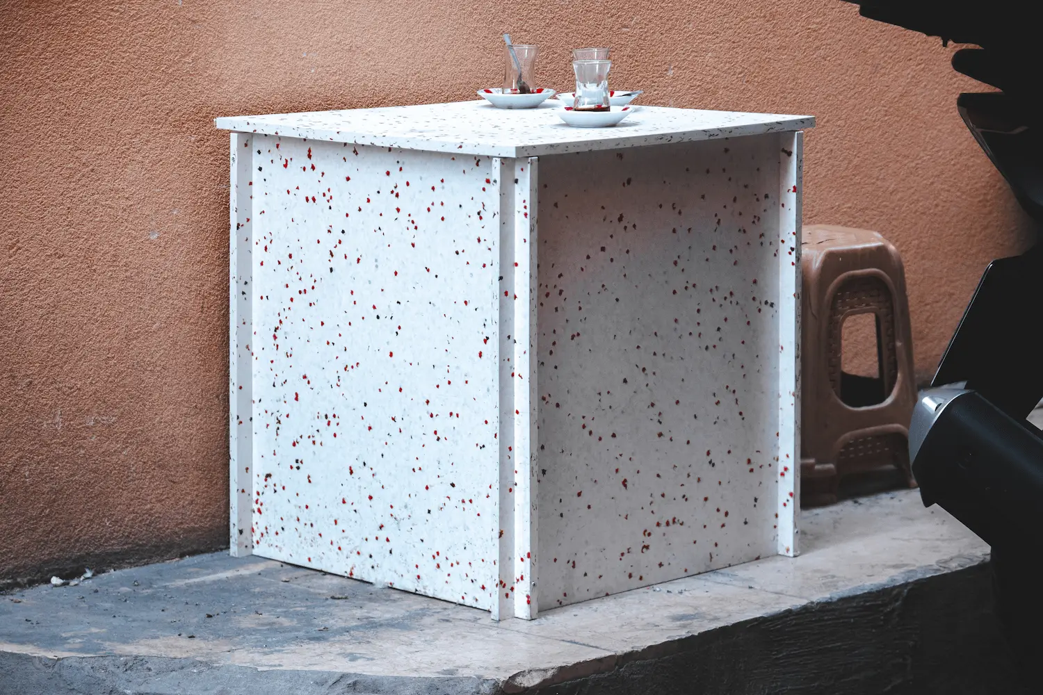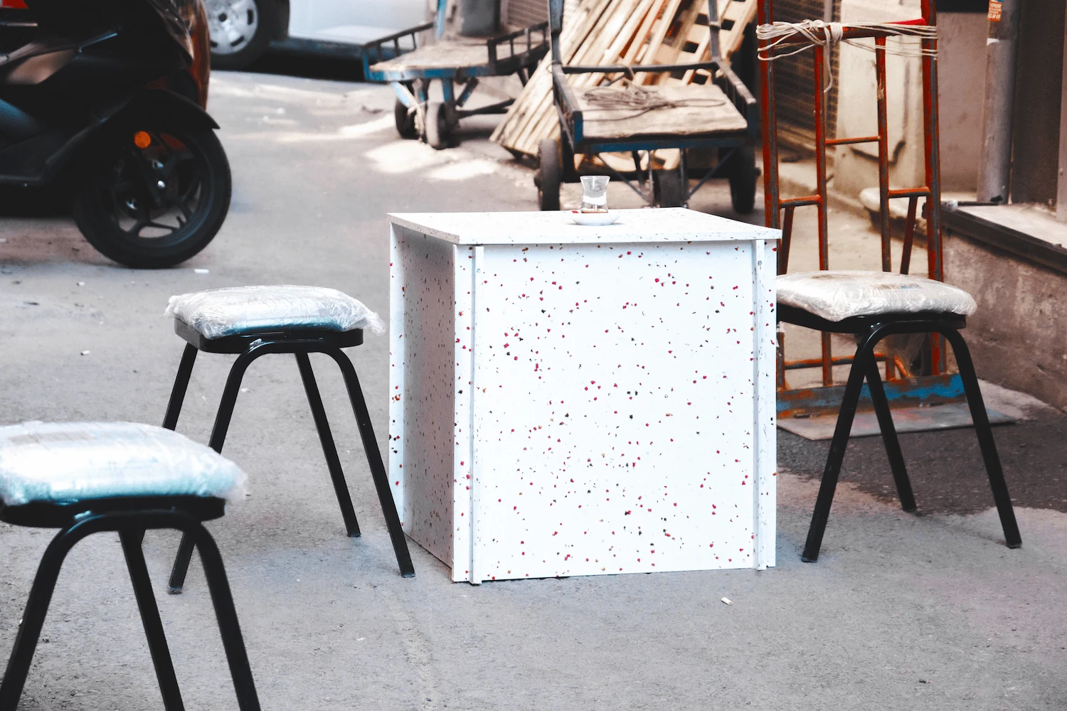 The modular system designed for Mercado Design Days was based on the idea that temporary event architecture can have a lasting afterlife. The modules, used as display elements during the event, were designed to transform into public furniture afterward. In this way, a single production process serves multiple use scenarios and offers a circular design approach that reduces waste.
