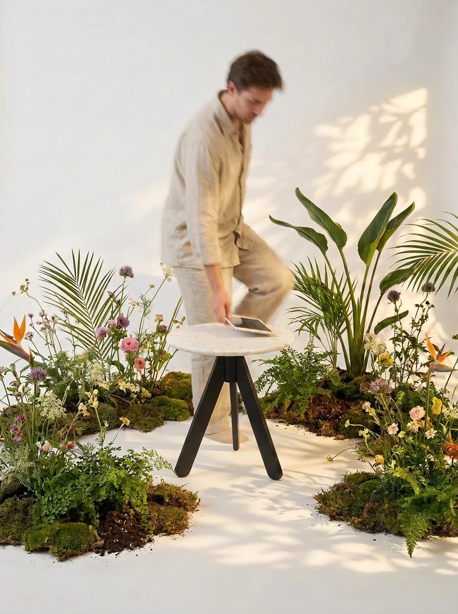 Side Table, Blai ve TEMPO işbirliğinden doğan flatpack mobilya koleksiyonu Good Stuff'ın parçası. %100 geri dönüştürülmüş plastikten üretilmiş Blai Panel tabla, TEMPO'nun toz boyalı çelik flatpack ayağıyla buluşuyor. Ev, stüdyo ve kafeler için.