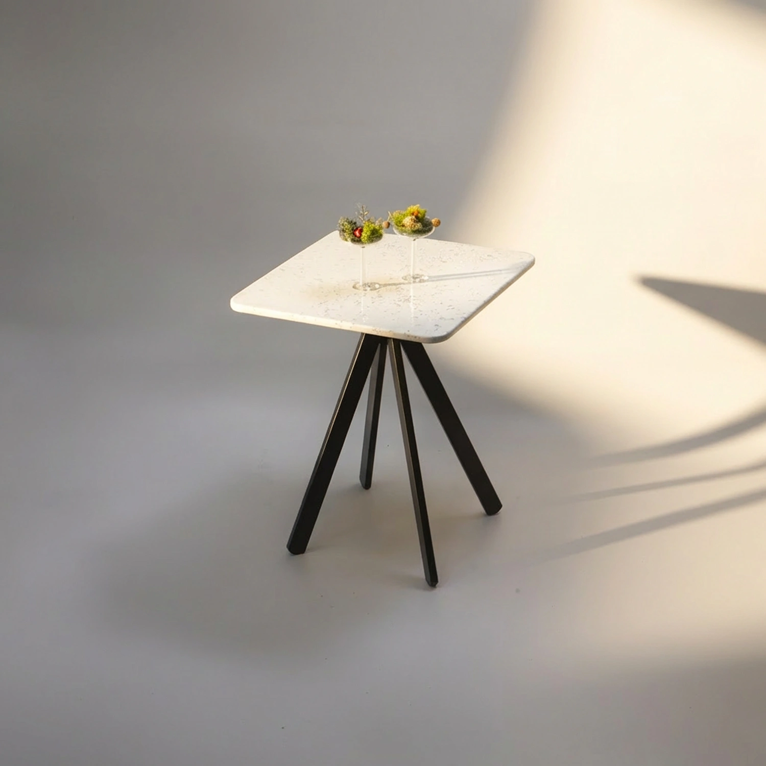 Square Table, Blai ve TEMPO işbirliğinden doğan flatpack mobilya koleksiyonu Good Stuff'ın parçası. %100 geri dönüştürülmüş plastikten üretilmiş Blai Panel tabla, TEMPO'nun toz boyalı çelik flatpack ayağıyla buluşuyor. Ev, stüdyo ve kafeler için.